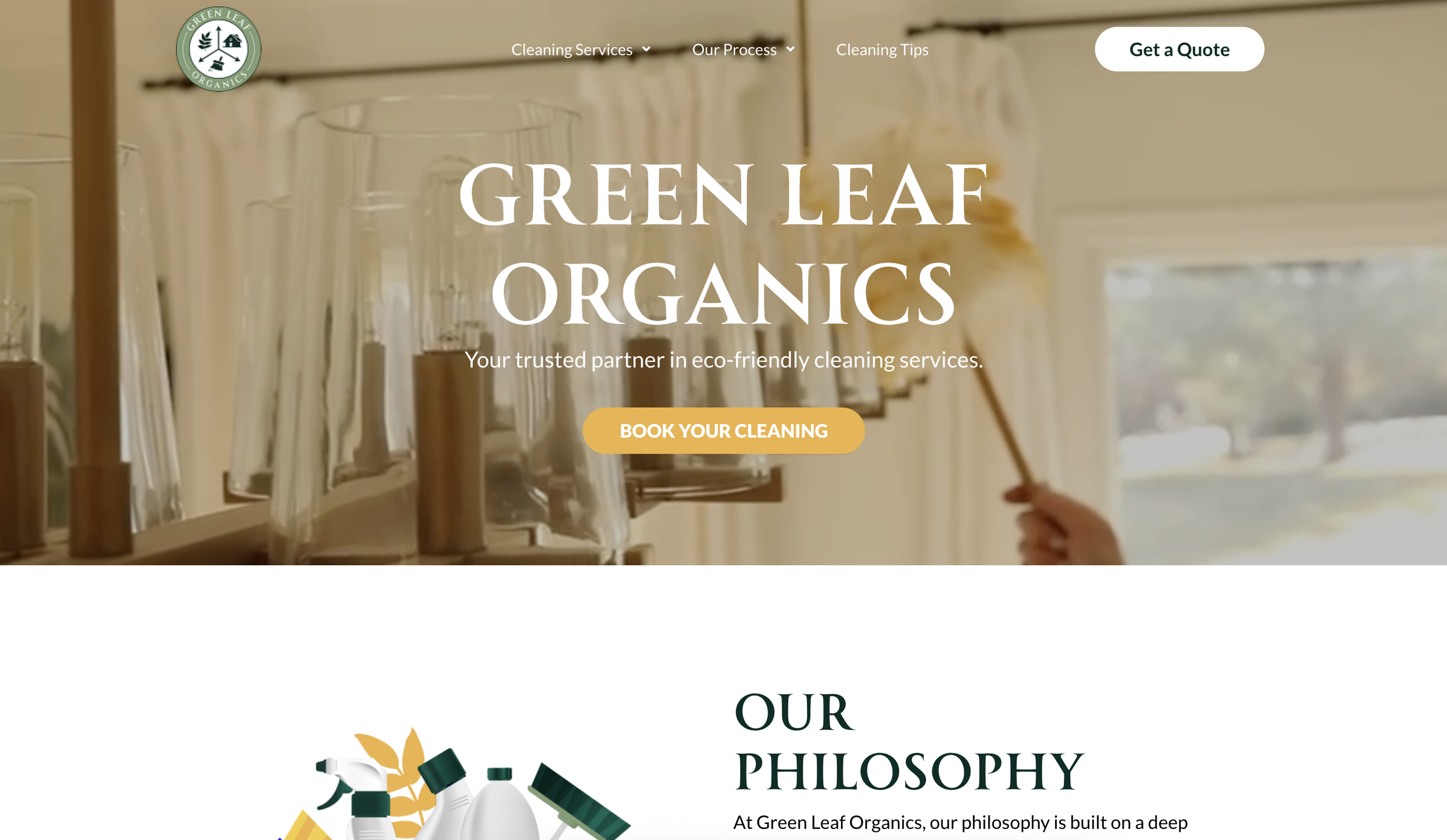 Based in Columbia, Maryland, Green Leaf Organics was designed from top to bottom at The Buswell Collective. , We started with a full branding package with logo design and mood boards and custom designed their entire website to attract both homeowners and businesses for professional cleaning service An appointment scheduling system was integrated to arrange meetings, as well as payment integration via square. All of the photography and video was done by The Buswell Collective as well.